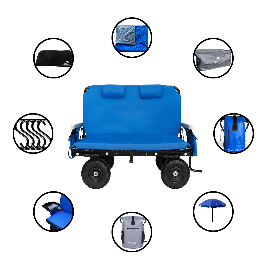 The perfect blend of convenience and comfort for your outdoor adventures. Designed with a passion for enhancing your outdoor experiences, this innovative and versatile wagon is your ideal companion for trips to the beach, park, camping, or any other adventure you have in mind. With its robust construction and thoughtfully designed features, the Lounge Wagon offers an effortless way to transport your gear, relax, and make the most of your time in the great outdoors. Get ready to take your outdoor escapades to a whole new level with the Lounge Wagon by Malo'o.